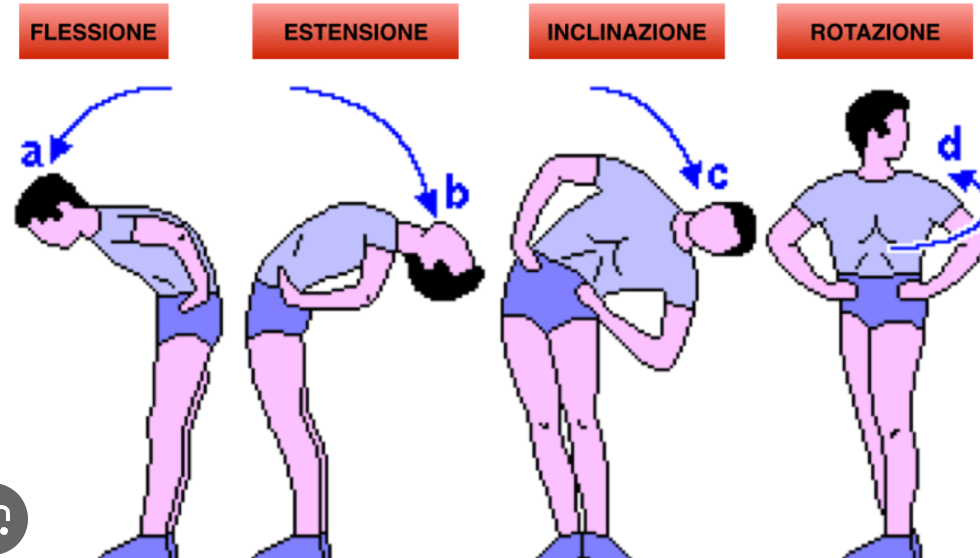 I movimenti propri della colonna sono quelli di flesso estensione, inclinazione laterale, rotazione e translazione. Il movimento di flesso estensione è quello più ampio.
